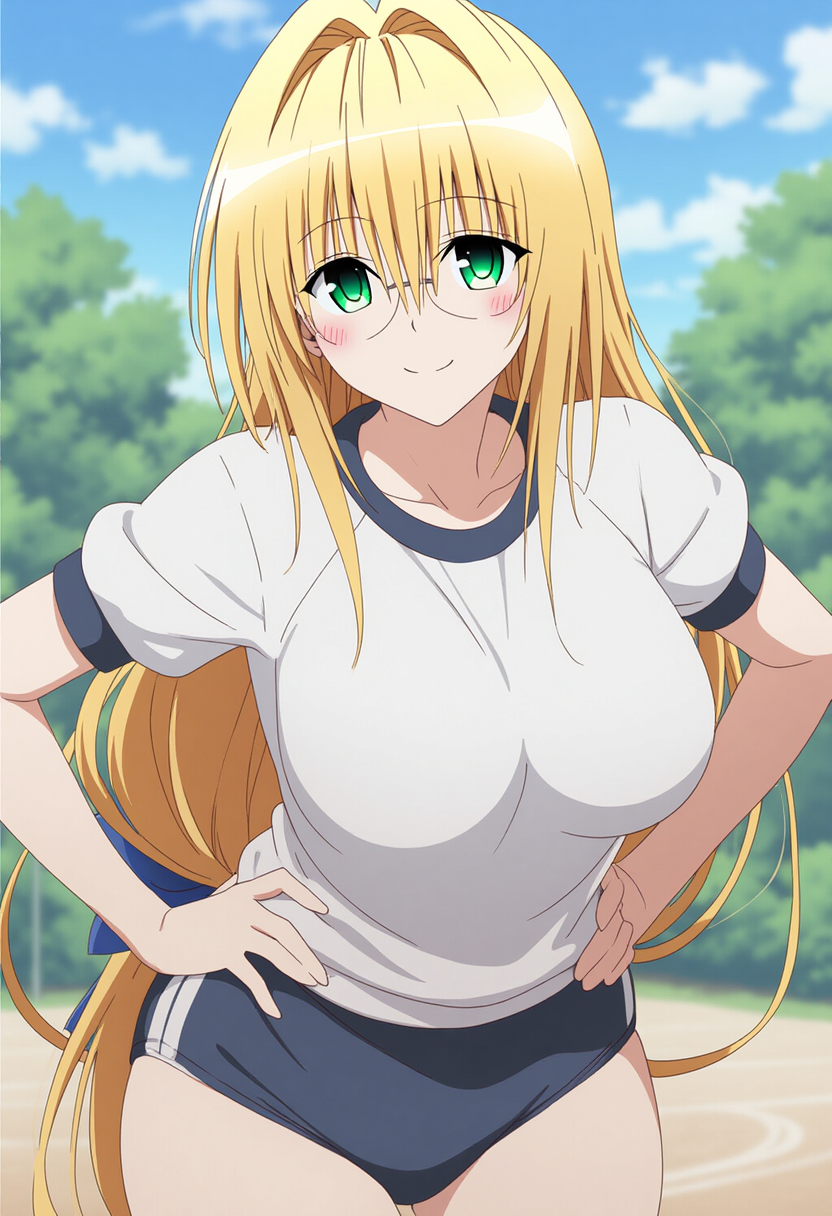 体操服(ブルマ)姿で腰に手を当ててポーズ取る、toloveるのティアーユ・ルナティークをお願いします!