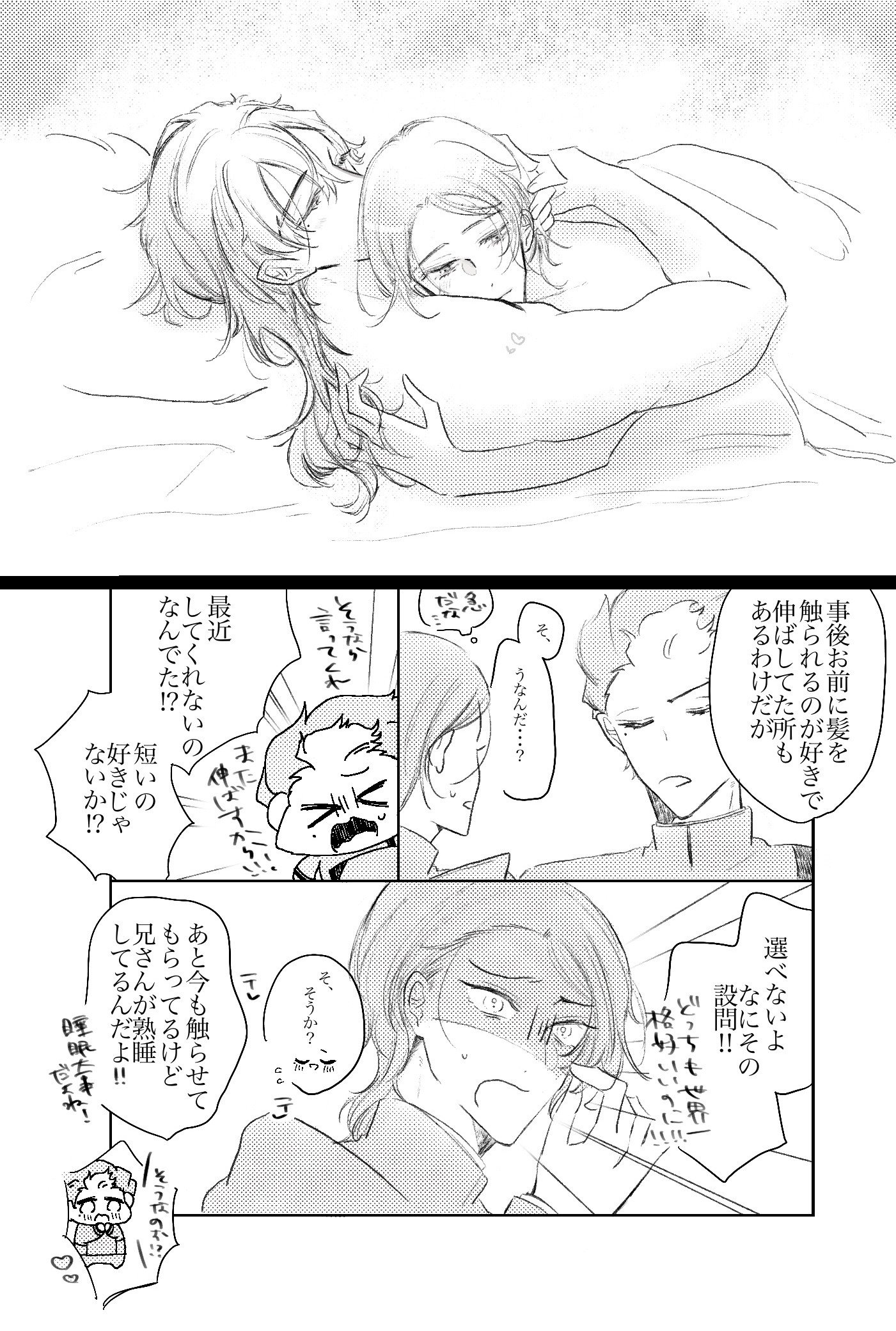 まだお題は受け付けておられますでしょうか…あこさんの描かれる兄弟の柔らかそうな髪(特にうなじ付近)が大好きなので、髪の毛に触れてる兄弟が見たいです。