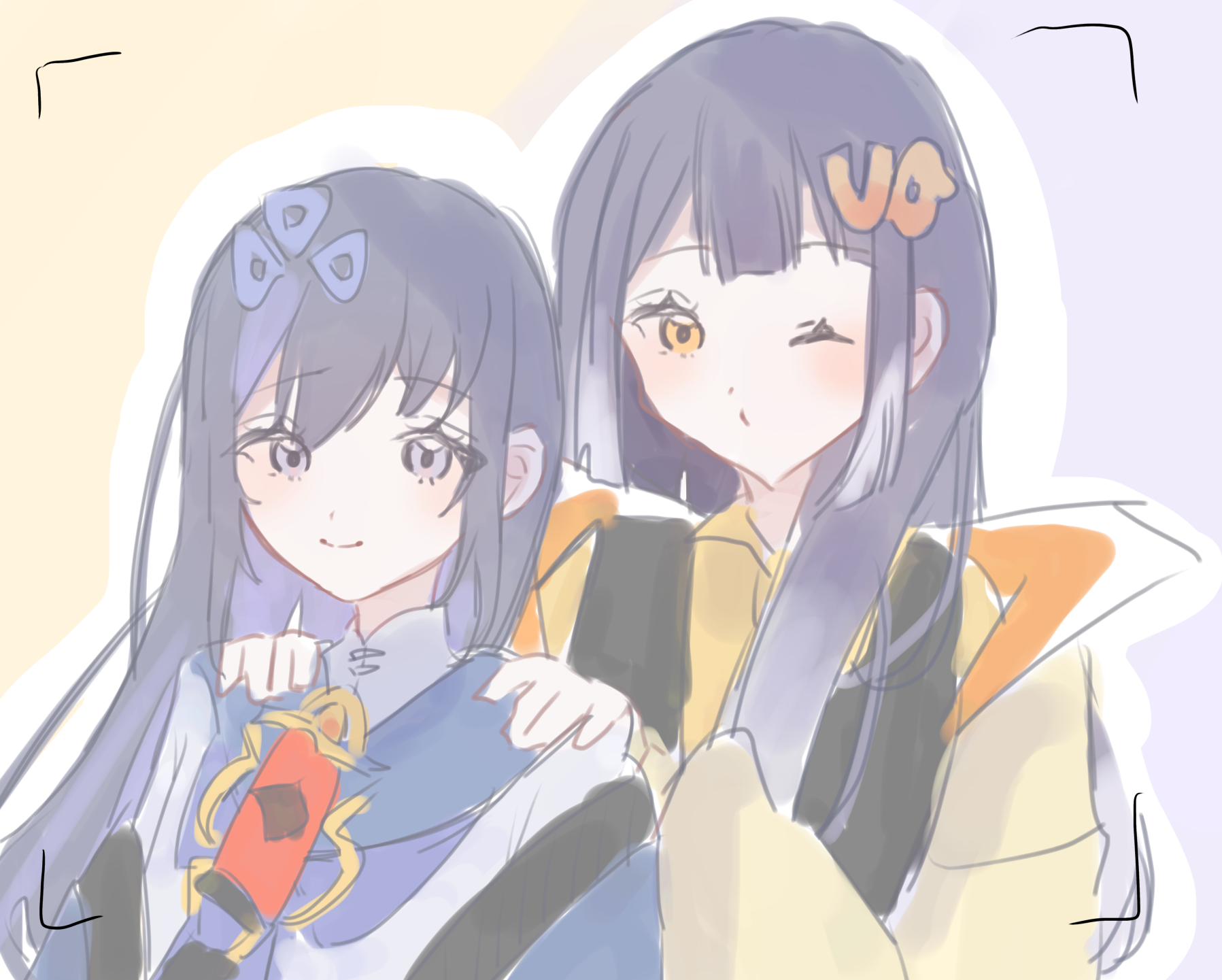 ・髪を下ろした先斗寧ちゃんと同じ胸の下辺りの長さでバッサリ切り揃えてお揃いにして来た海妹四葉ちゃんと2ショットを撮ってるイラストを見てみたいです!