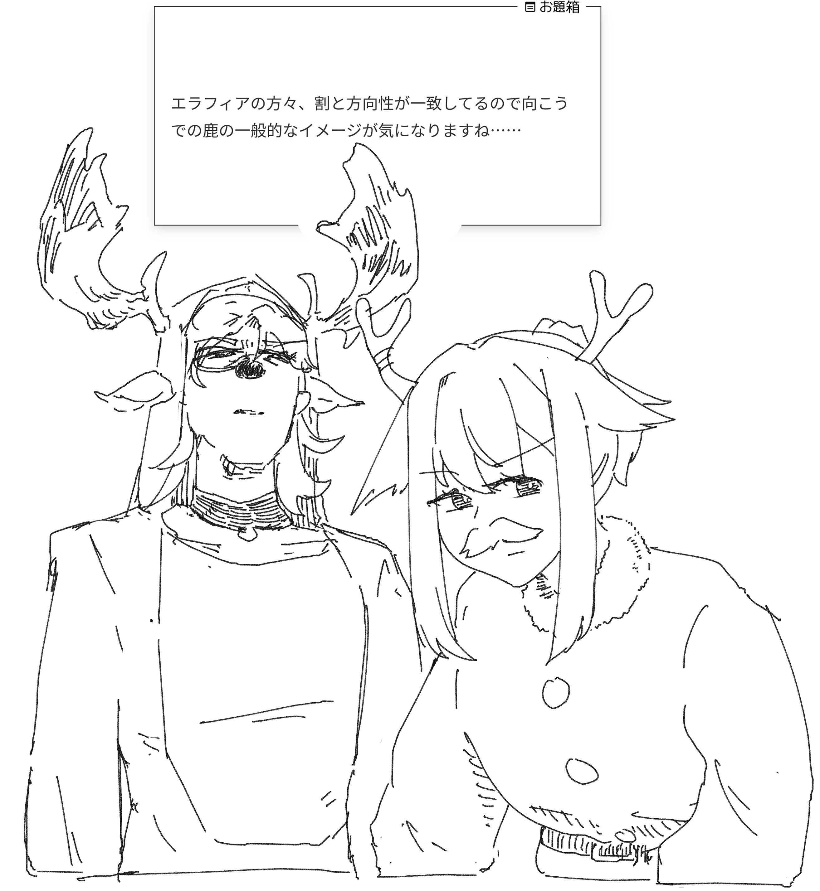 エラフィアの方々、割と方向性が一致してるので向こうでの鹿の一般的なイメージが気になりますね……
