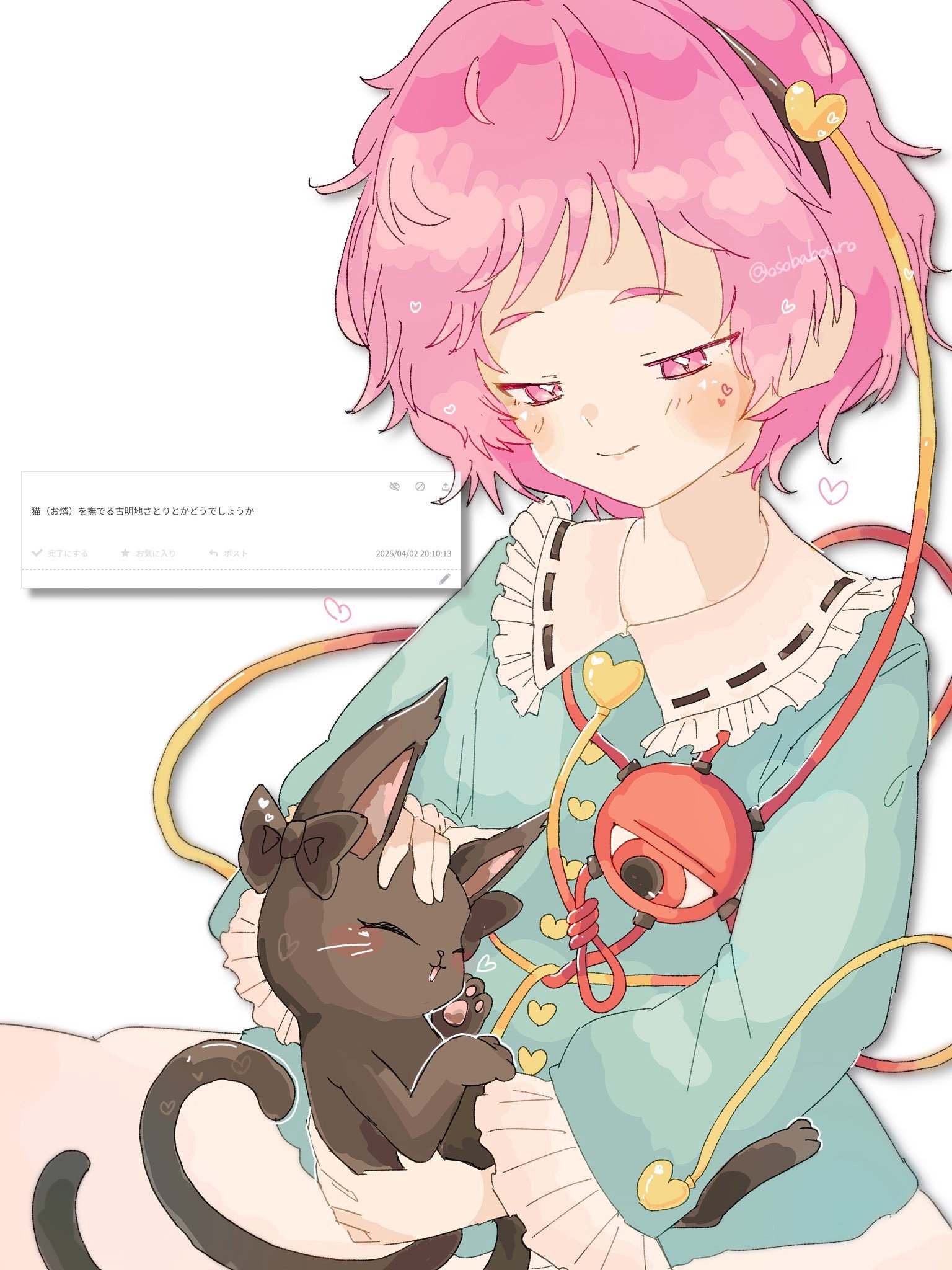 猫(お燐)を撫でる古明地さとりとかどうでしょうか