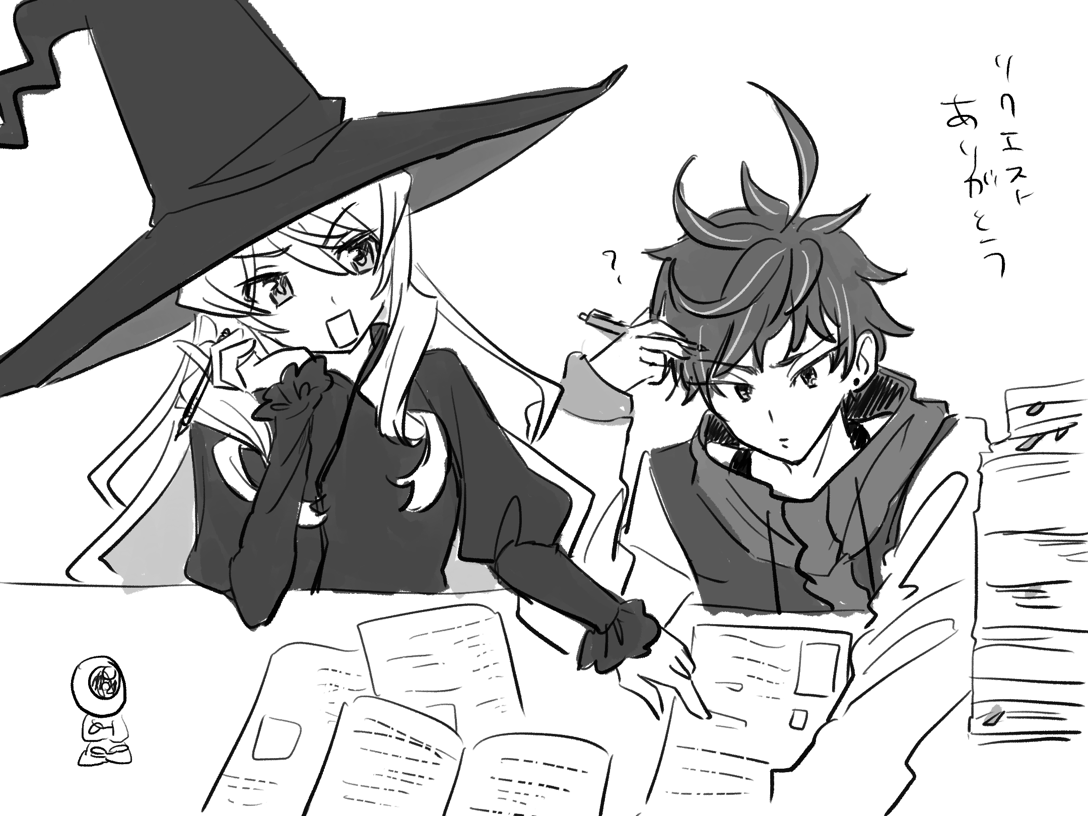ゲゲゲの鬼太郎6期のキャラの魔女アニエスと石動零が一緒に勉強をしているイラストの作成をお願いします。