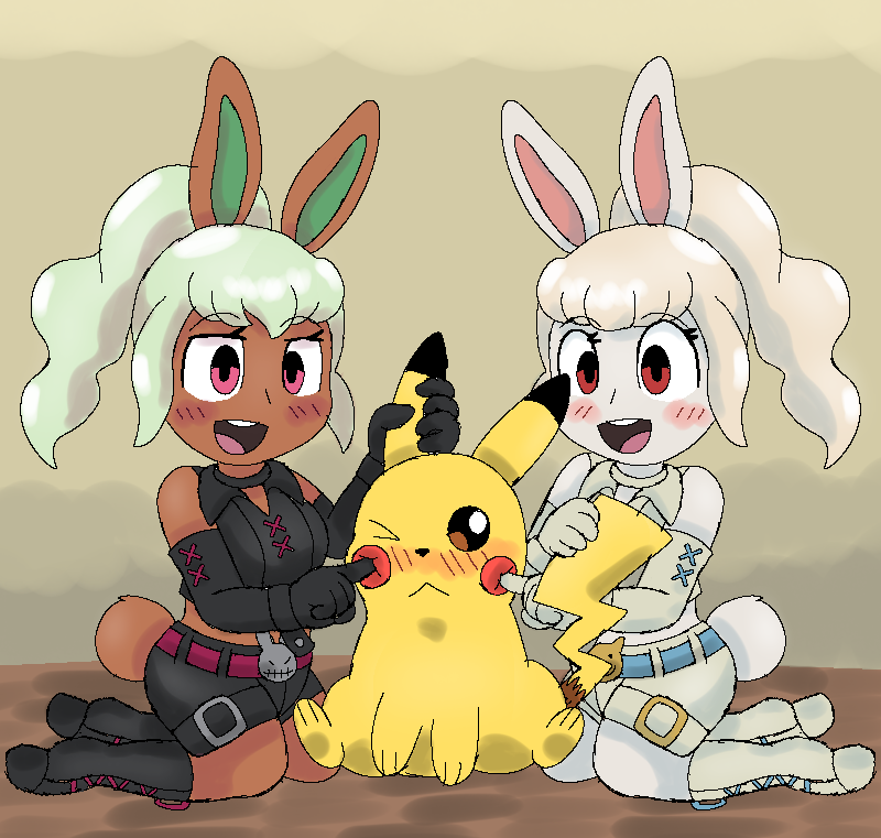 スノーラビィとバニー・ミントにちやほやされるピカチュウをお願い致します。