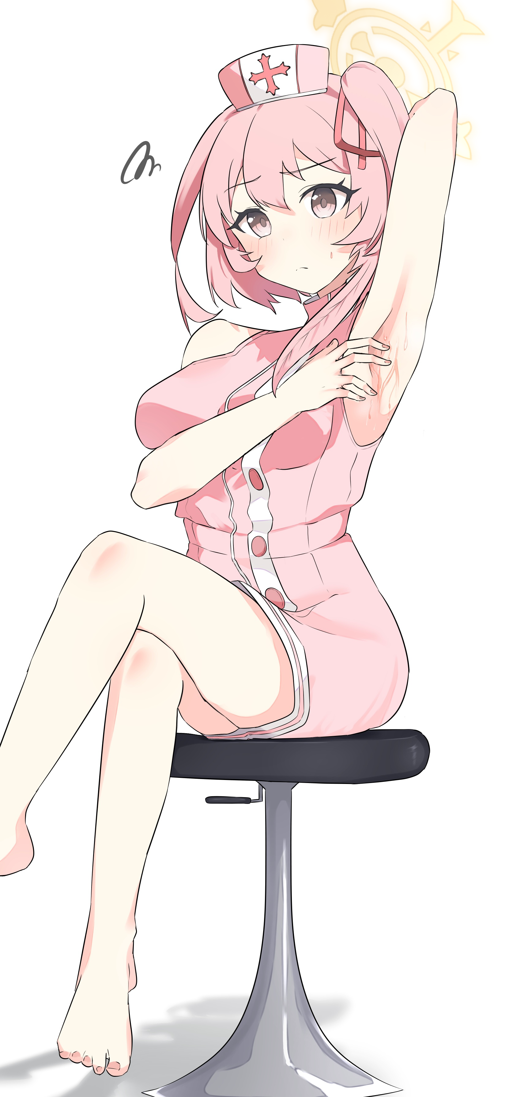 片腕の袖を捲り上げてる、ノースリーブな感じで汗だくな腋が見える