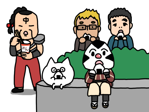トー横の道端おにぎりスポットに集うとりのちから、おむすびマン(やなせたかし)、サンドイッチマン(芸人)、ラーメンマン(ゆでたまご)