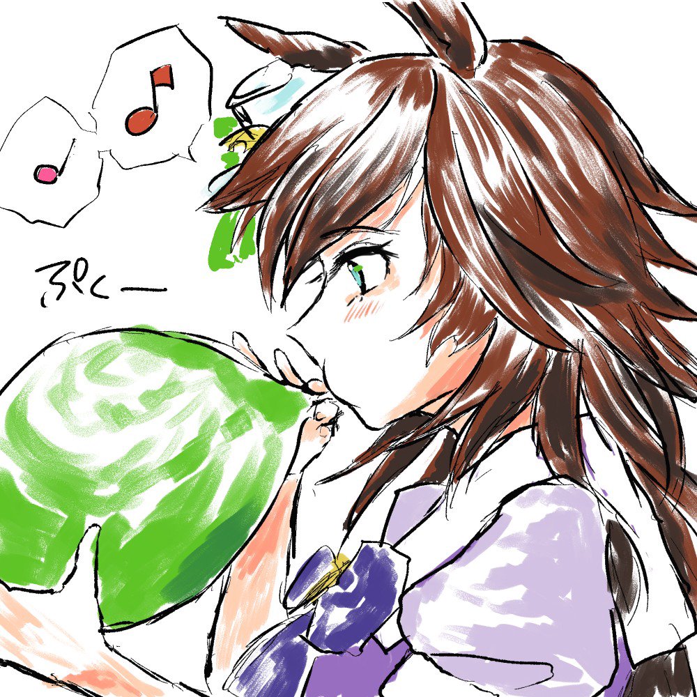 学園祭の準備で口で風船(普通のゴム風船)を膨らませてるトレセン制服のミスターシービーさんをお願いします!