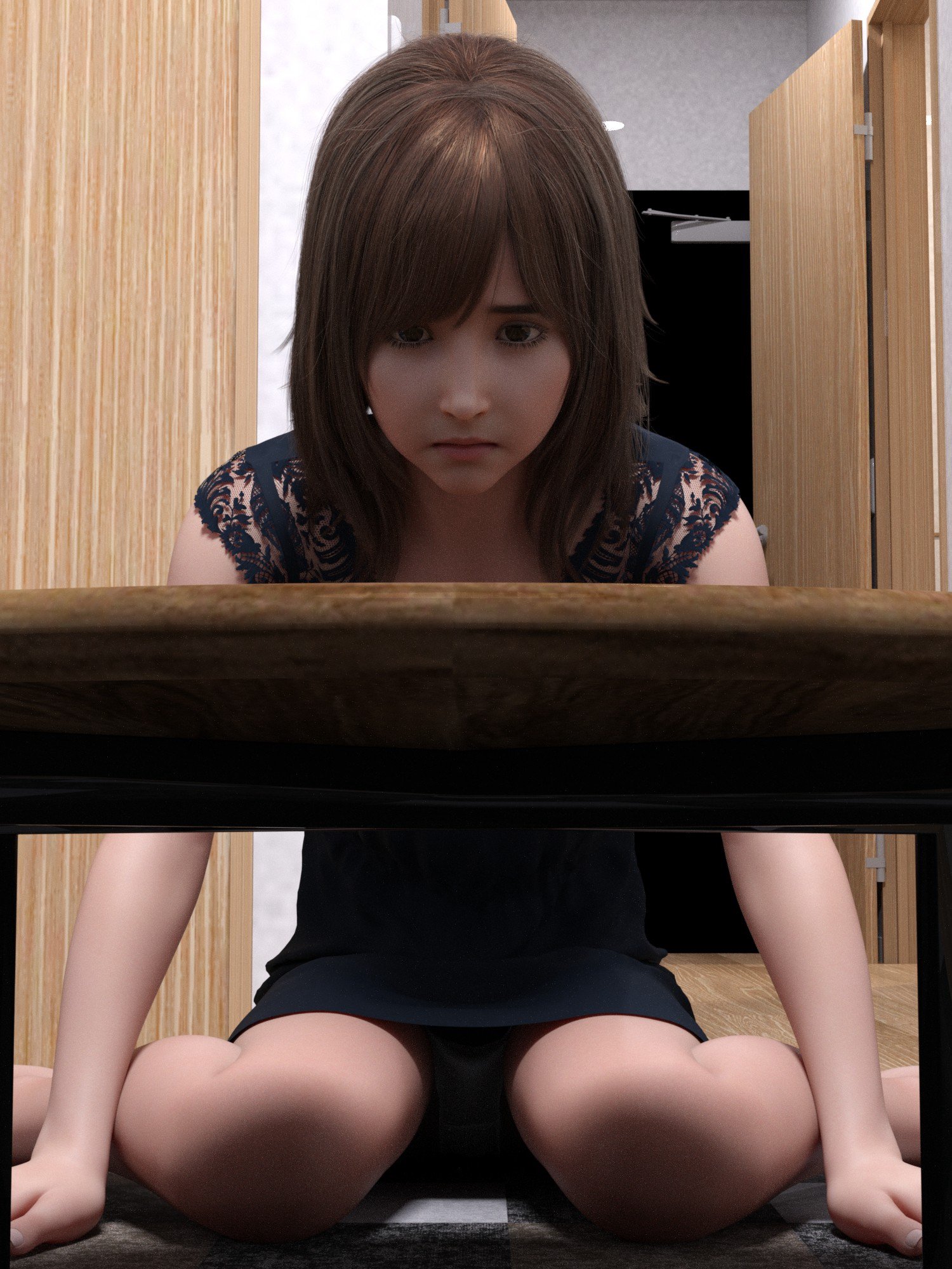 トイレが故障中のため、ポータブルトイレ(介護用やアウトドア用でなく、普通の洋式に近いもの)で用を足すシーンをお願いします。