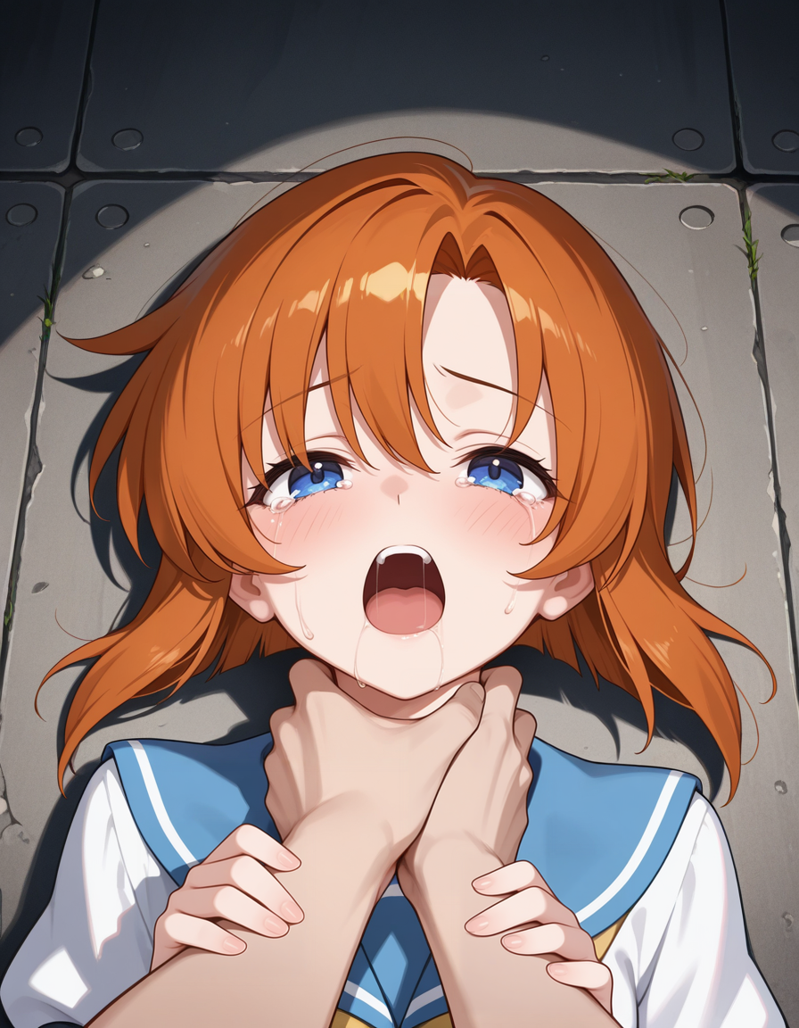 ひぐらしのなく頃にからで竜宮レナが首を絞められているイラストをお願いします。