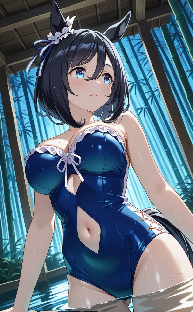 ウマ娘のエイシンフラッシュさんで、ストラップレス水着という紐無し水着を着てるのをお願いしたいです。