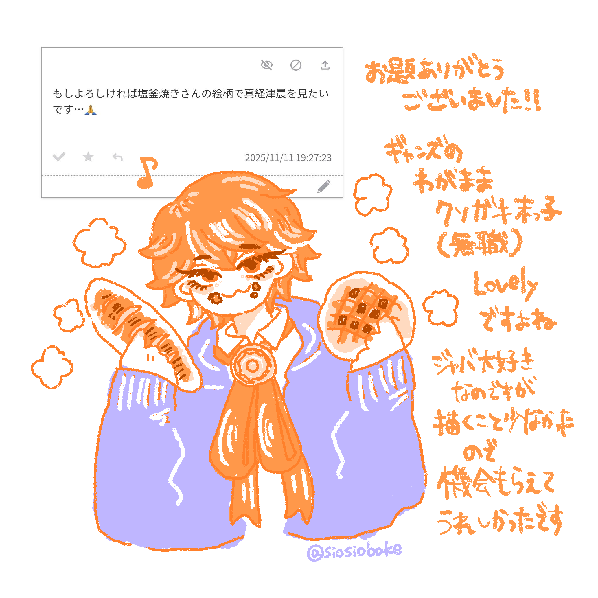 もしよろしければ塩釜焼きさんの絵柄で真経津晨を見たいです…🙏