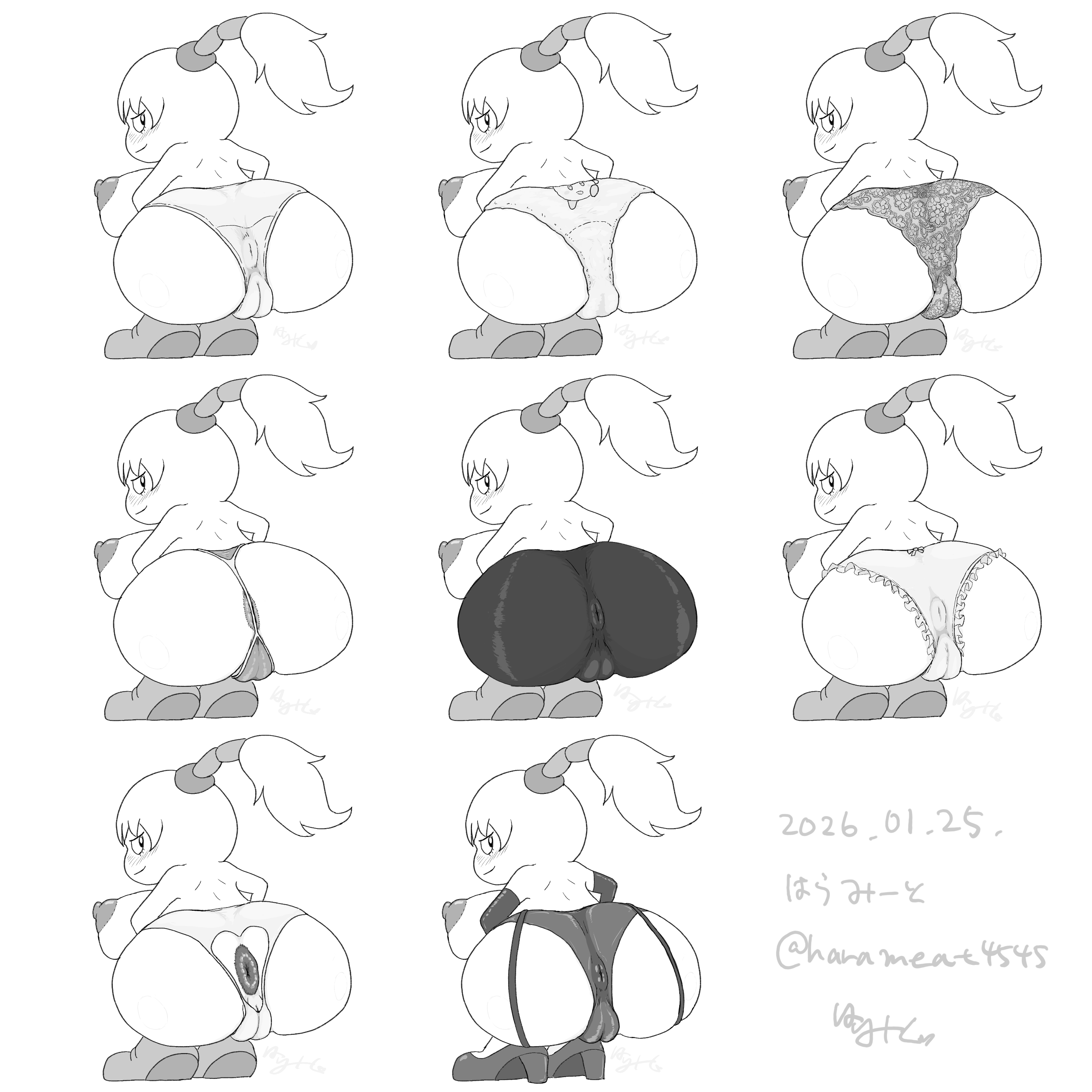 背を向けて、パンツ(下着)姿でおしりフリフリするフーム(星のカービィ)を描いてください^^