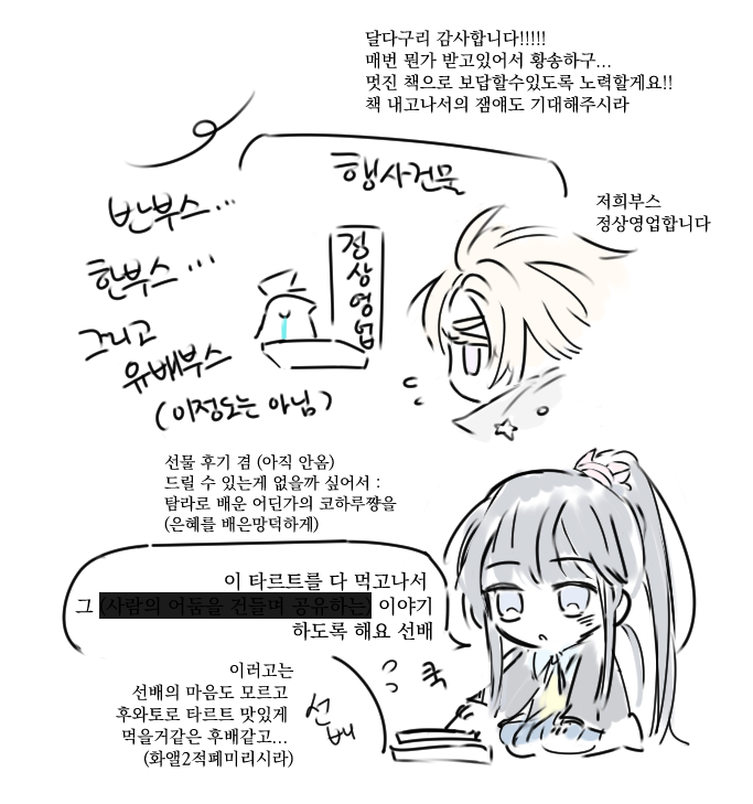 마침 펜을 들고있었기때문에 이렇게 감사한 마음을 그림으로나마...