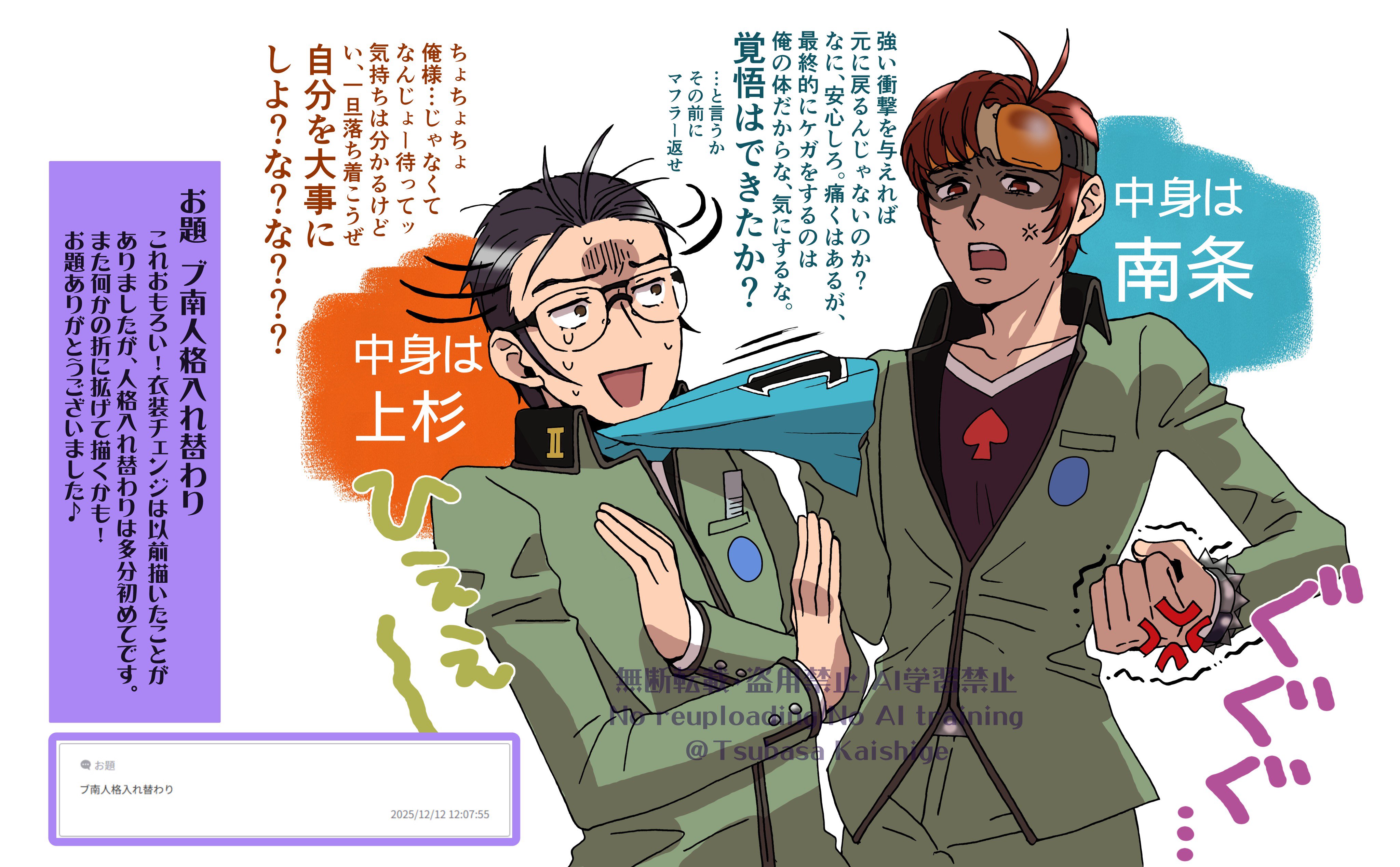 お待たせしました!意外と今までやってないシチュだったので楽しかったです。またお話を拡げて漫画とかでも描かせていただくかも!ありがとうございました。