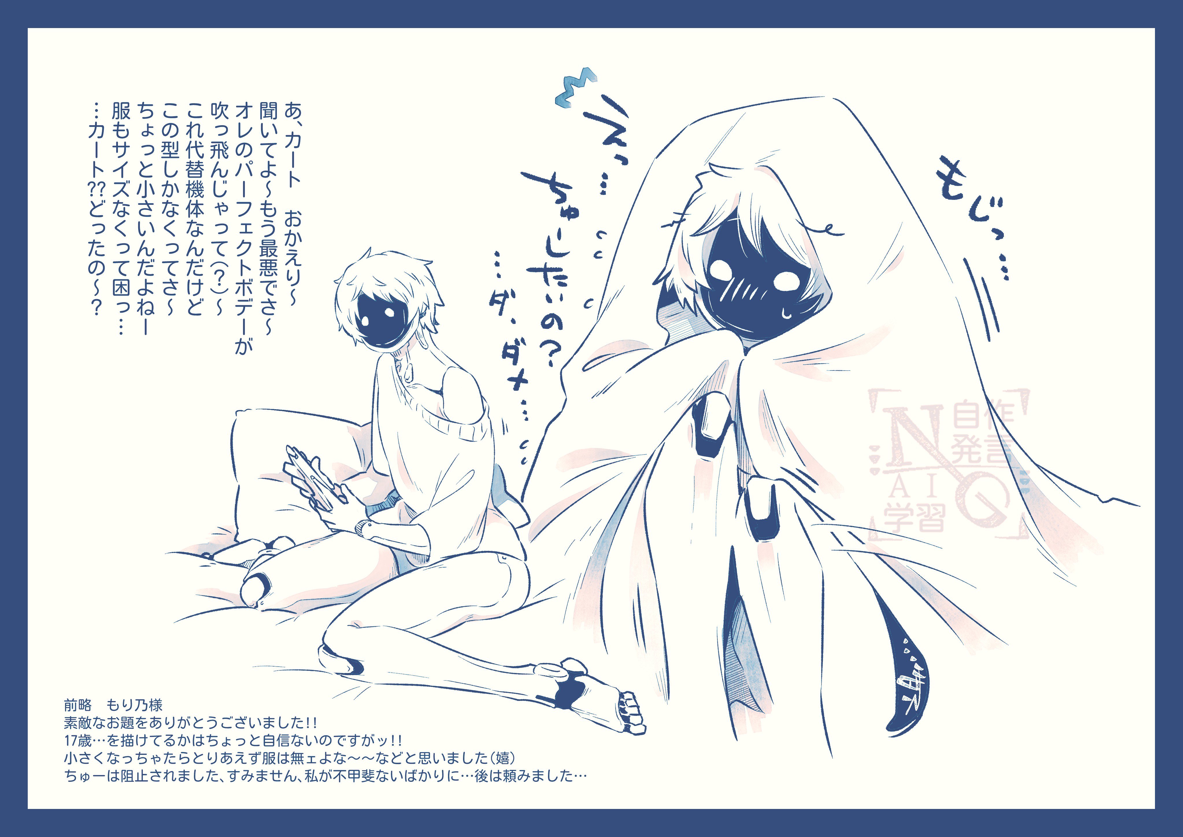 もし、もしよければ『ベッドの上で女の子座りでお布団被ってる、なぜか見た目13歳くらいの少年🦏📺が可愛すぎてちゅーしちゃう🦾』が見たいです(癖ダダ漏れ)